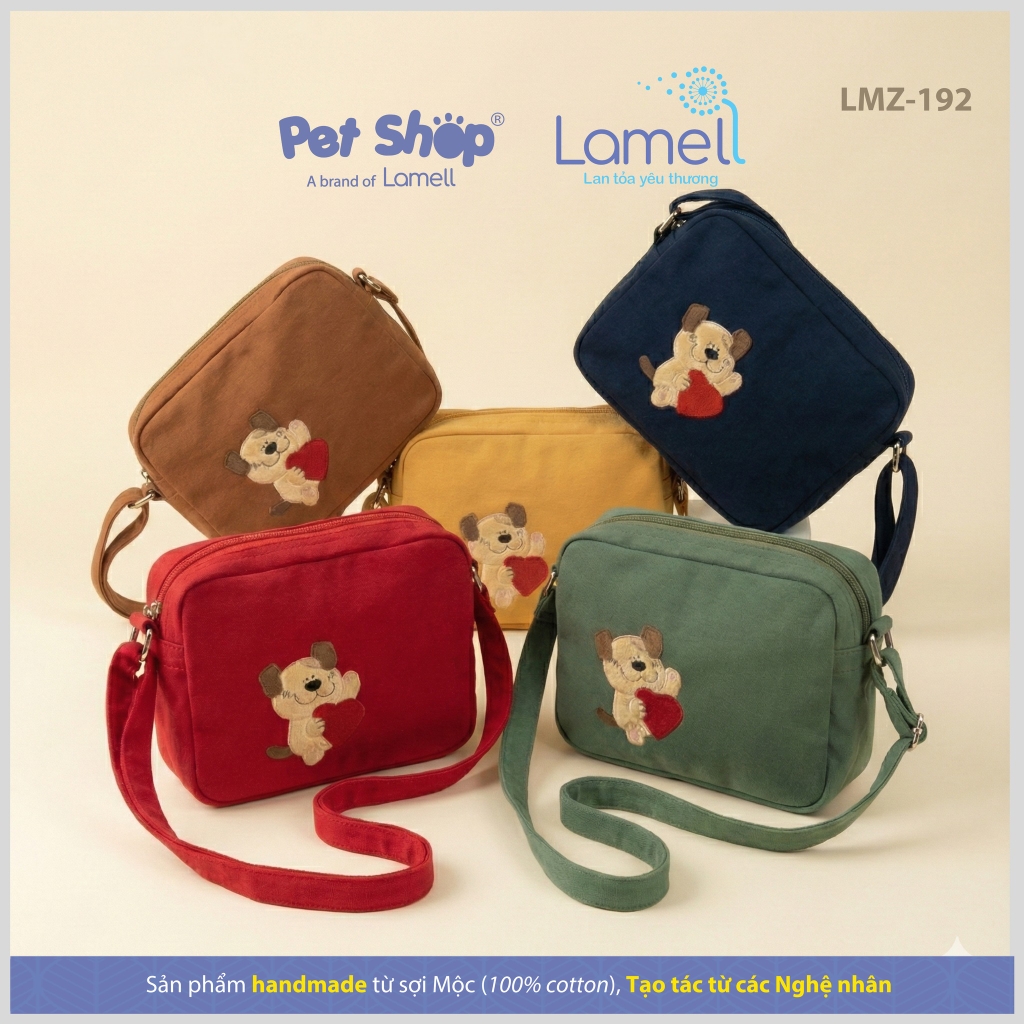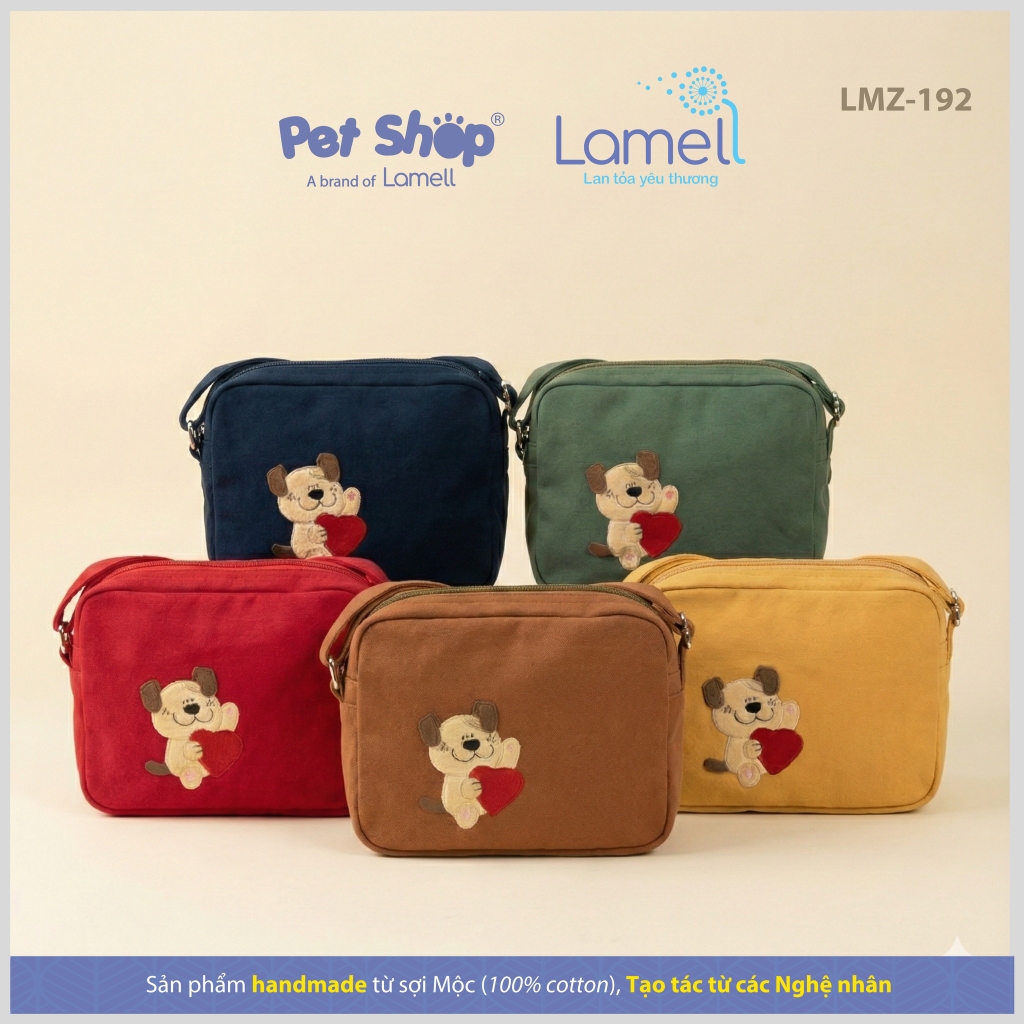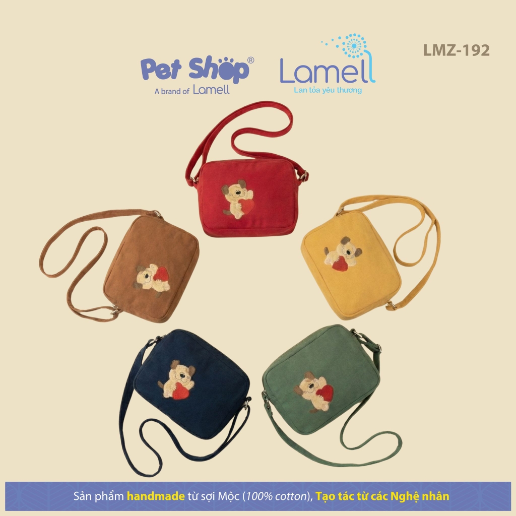 Túi hộp nhỏ gọn cùng với họa tiết cún con đáng yêu ôm trọn trái tim, được thêu nổi bật trên túi.